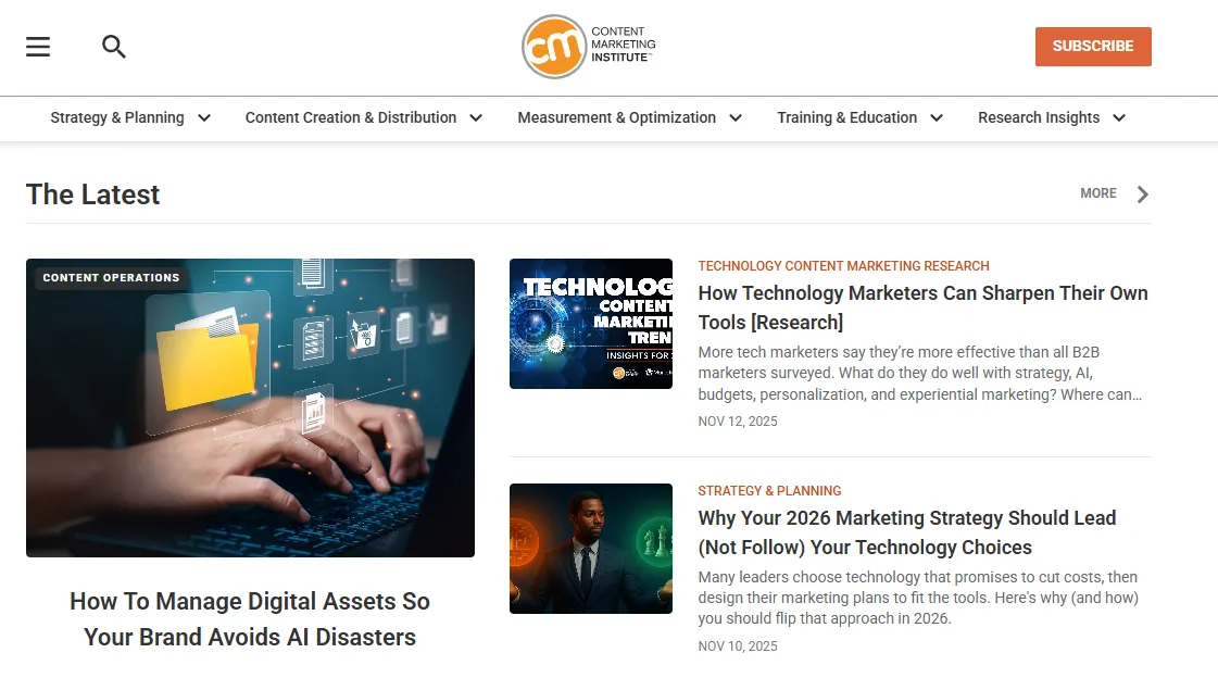 If you want to understand how SEO and storytelling work together, the Content Marketing Institute is the place for it. Their articles feel like step-by-step strategy sessions: practical, readable, and filled with examples you can use right away. You’ll see how keyword mapping, narrative structure, and content distribution all connect to real search performance.