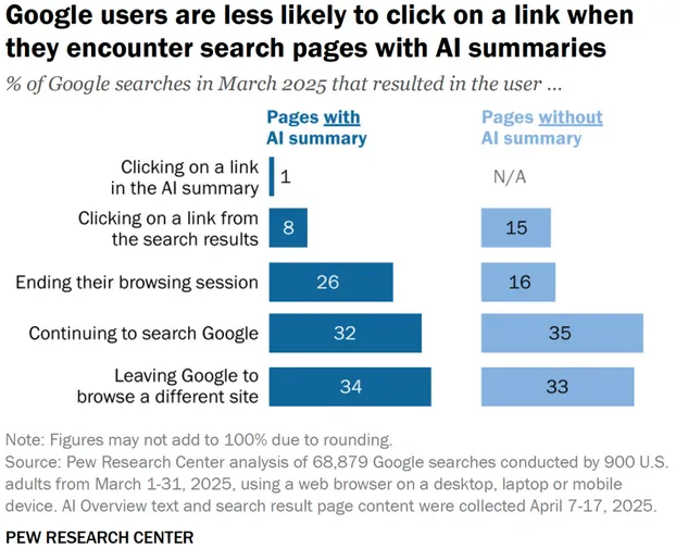 As you can see from the graph below, users are far less likely to click on a link if an AI summary answers their query: