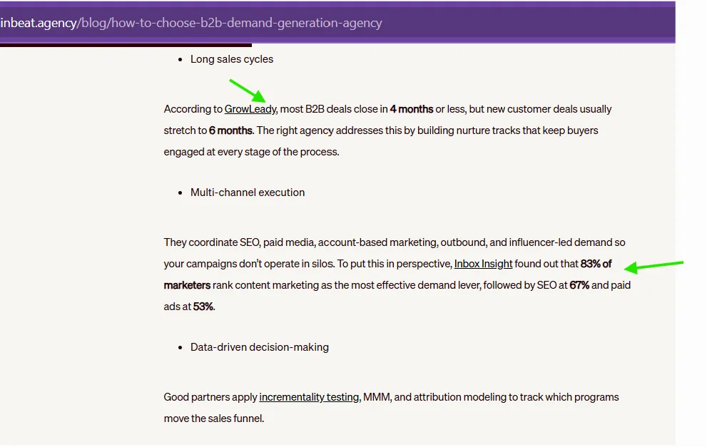 - Publish data-backed insights, add expert bios, and link to reputable studies, like we do for all our clients, including inBeat Agency: