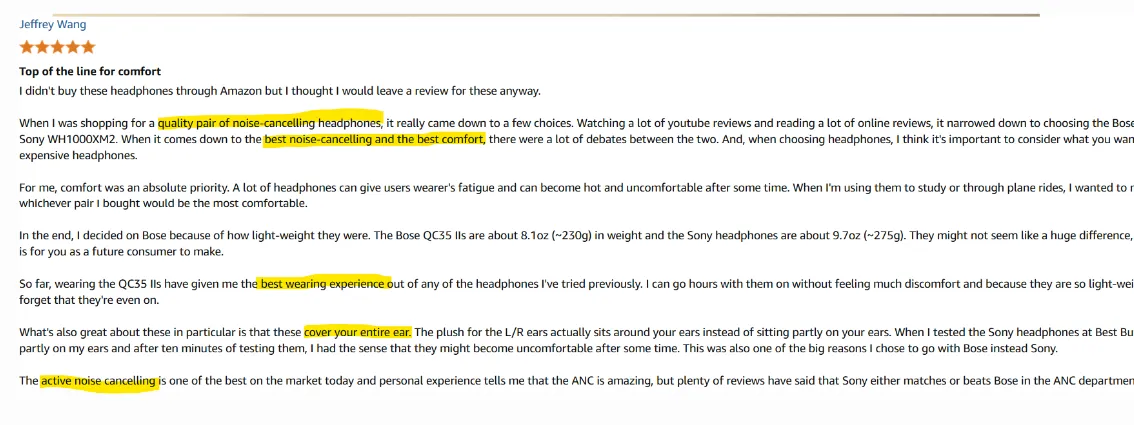 Customer reviews, Q&A threads, and social media posts are packed with long-tail keywords and real-world search query phrases you may not be targeting yet.