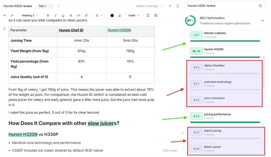 - Terms like “Alpha chamber” and “patented technology” let you write BOFU articles about Hurom products